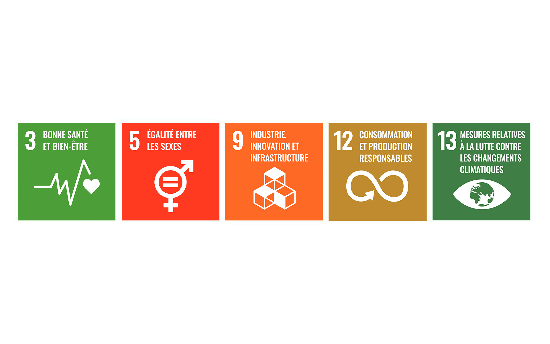 Les principaux objectifs de développement durable (ODD) selon le Pacte mondial des Nations unies pour l’industrie que nous intégrons plus spécifiquement dans notre nouvelle stratégie de développement durable sont les objectifs 3, 5, 9, 12 et 13.